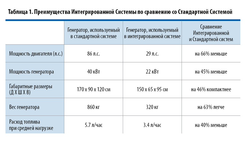 В таблице1 приведены сравнительные характеристики стандартного 40 кВт генератора и генератора, используемого в интегрированной системе Reactor.