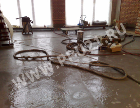 Бетонный пол в квартире до напыления поликарбомидного покрытия (полимочевины), обработан специальным праймером
