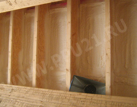 вспененный пенополиуретан надежно изолирует чердачное пмещение