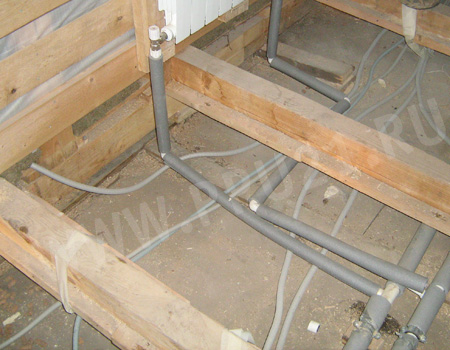 Вид части теплоизолированного Пенополиуретаном пола, коммуникации внутри ППУ