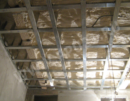 Потолок подготовлен к утеплению ППУ. Установлены направляющие.