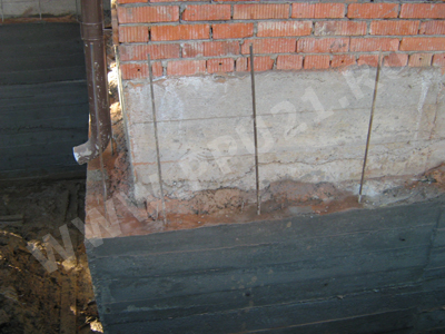 Дренаж у бетонного фундамента строящегося здания в Абрамцево