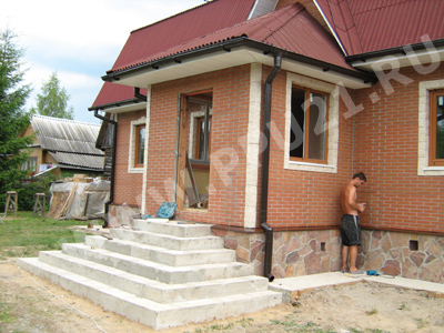Дачный дом облицованный термопанелями и с изолированным полистиролом цоколем