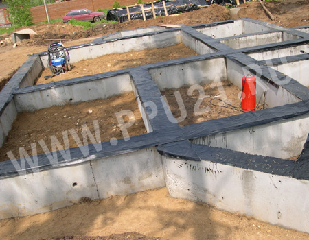 Покрытие готового фундамента изоляционным материалом - мастикой