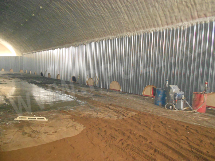 Завершающий этап теплоизоляционных работ в овощехранилище, построенном по типу бескаркасного арочного ангара в селе Саначино